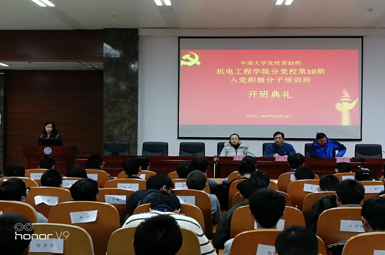 11月18日下午1:30,中南大学党校第35期、机电工程学院分党校第10期入党积极分子培训班开班典礼在机电楼B214报告厅隆重举…