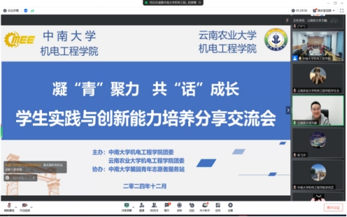 12月27日,我院携手云南农业大学机电工程学院在中铝科技大楼C202会议室以线上线下相结合的方式顺利举办“凝‘青’聚力 …