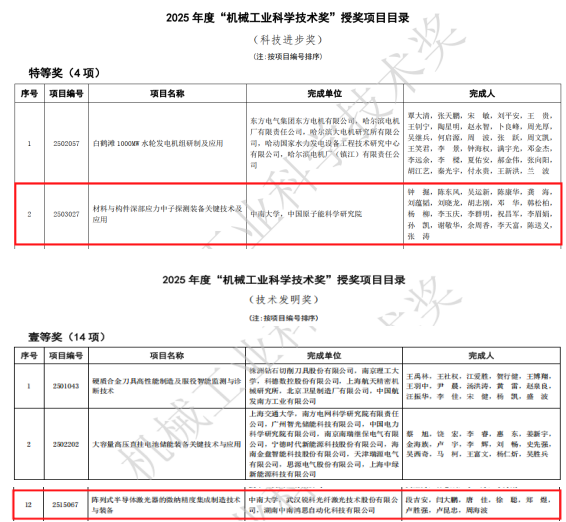 近日,2025年度“机械工业科学技术奖”获奖名单正式揭晓,我院荣获1项特等奖、1项一等奖。中国机械工业科学技术奖是经国…