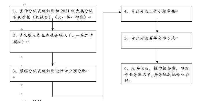 机械类专业分流工作从大一第二个学期四月份开始(具体时间以本科生院的通知为准),工作流程如下: