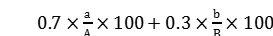 其中a为某同学的学习成绩绩点,A为申请者中最高学习成绩绩点;b为某同学的科研成果计分,B为申请者中最高科研成果计分。
