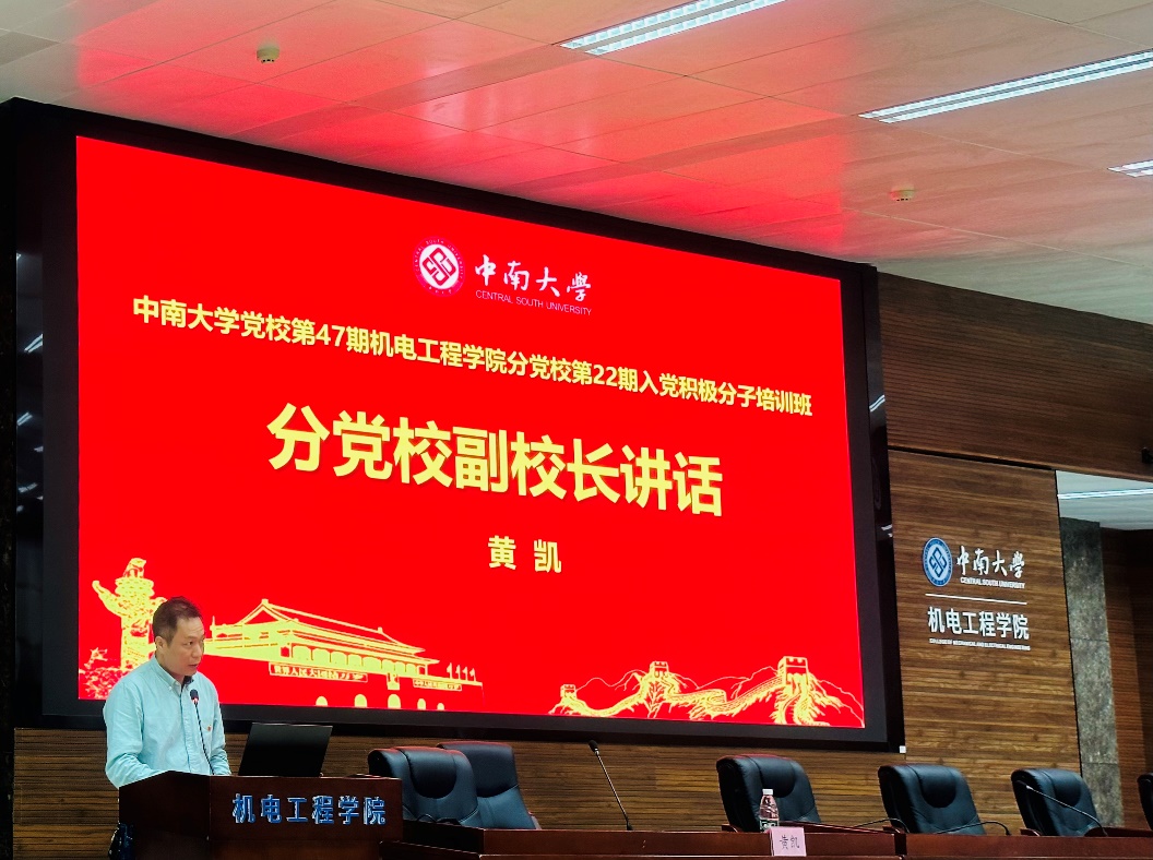 4月12日下午,中南大学党校第47期机电工程学院分党校第22期入党积极分子培训班在机电楼B214报告厅顺利开班。我院党委副书记、分党校副校长黄凯出席,培训班全体学员参加。仪式由分党校班导师欧阳瑜主持。
