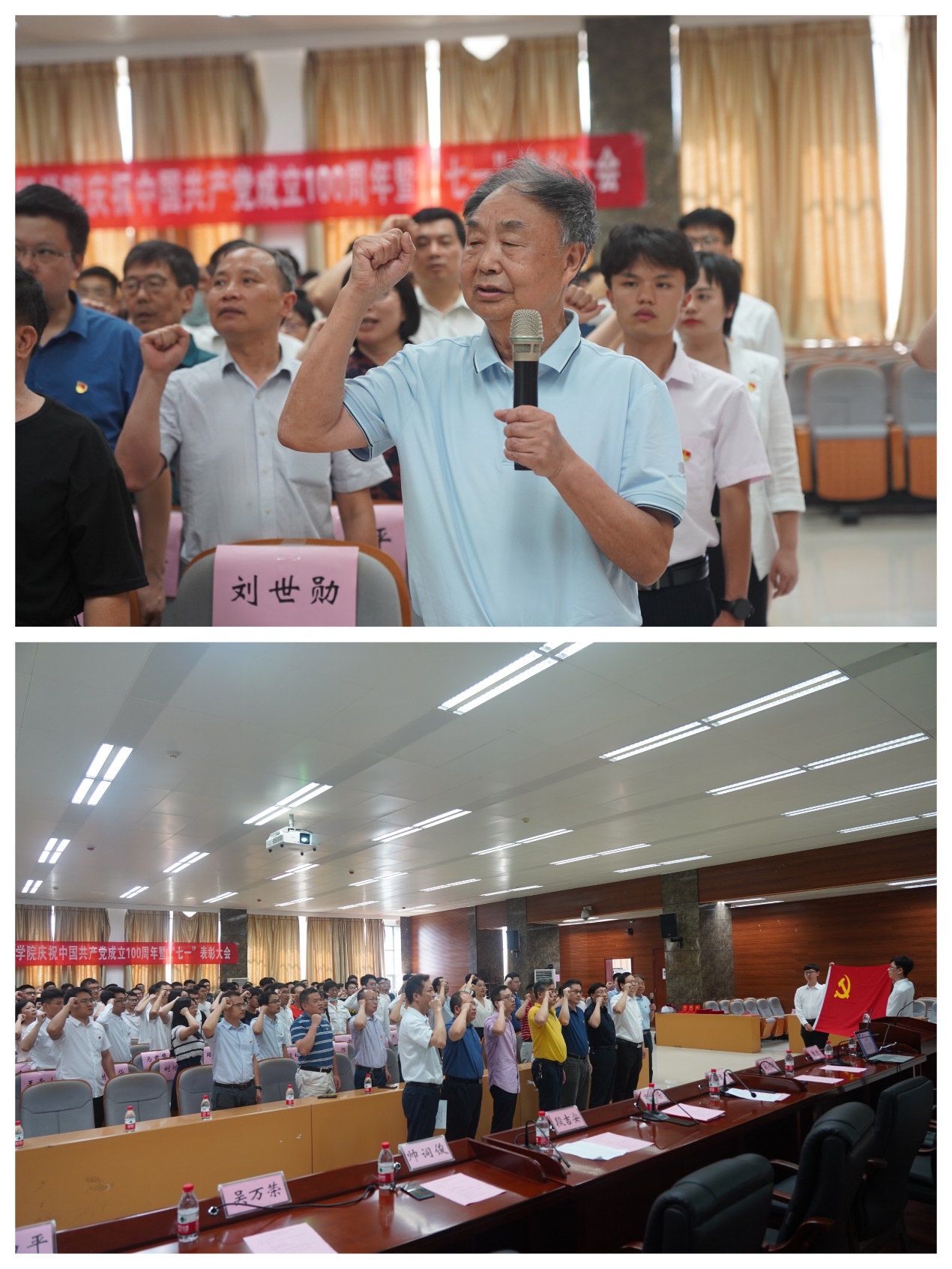 在严肃热烈的氛围中,肖来荣书记发表总结讲话。他首先代表学院党委对受表彰的先进集体和个人表示祝贺,并向辛勤工作在教学、科研、管理、服务等各个岗位上的广大共产党员及曾经为学校建设和学院发展做出贡献的离退休老党员,致以节日的问候和崇高的敬意!