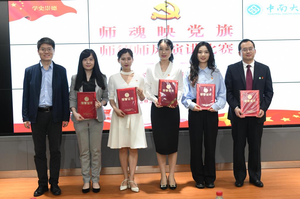 比赛过程精彩纷呈,高潮迭起。参赛教师围绕“师魂映党旗”这一主题,以丰富的内容、真挚的情感、生动的语言、极具感染力的演讲形式,流露了我校教师坚守教育一线立德树人的真情实感,展现了新时代教师为党育人、为国育才的精神风貌。我院辅导员周芳以“师之大者,为国为民”为题,讲述了湖南省教书育人楷模特别奖获得者--湘雅医院吴安华教授的感人事迹,展现了他“悬壶济世、传道授业”的从医执教人生。演讲最后,周芳讲道“习近平总书记在清华大学考察时强调,教师要成为大先生,做学生为学、为事、为人的示范,促进学生成长为全面发展的人。作为青年教师,我们时刻不敢忘记自己肩上的责任:教书育人,为国为民。