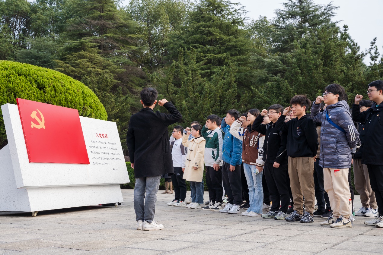 在刘少奇同志铜像广场前,党支部书记黄奎带领全体党员同志重温入党誓词,庄严宣誓。往返途中,支部举办了党史知识竞答的活动,为同学们送上中南大学文创产品。