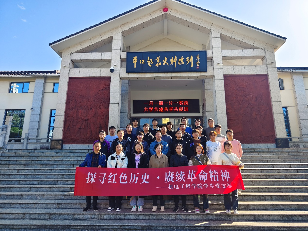 为进一步体会革命志士的奋斗历程与光辉岁月,深入学习红色文化,2023年11月19日,学院研机制一支部全体师生党员举行“探寻红色历史,赓续革命精神”主题社会实践活动,赴平江起义旧址、杨开慧故居等红色教学基地参观学习。