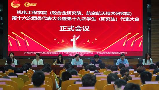 9月27日下午,机电工程学院(轻合金研究院、航空航天技术研究院)第十六次团员代表大会暨第十九次学生(研究生)代表大会在中铝科技大楼B214报告厅顺利召开。校团委书记刘正宗,院党委书记肖来荣、副书记李玲芝,航空航天技术研究院副院长杏建军以及280余名师生代表出席本次会议。