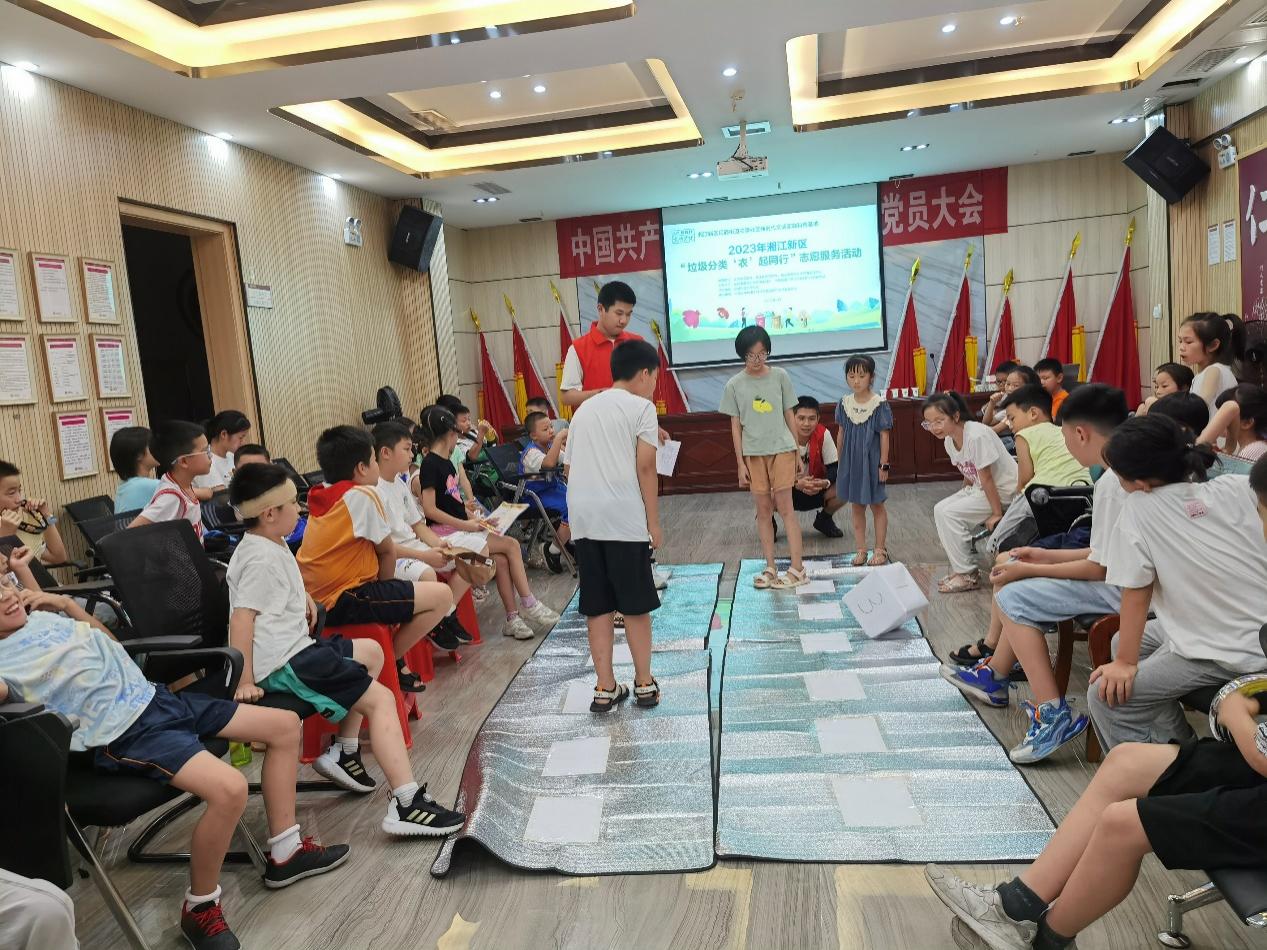 “绿水青山就是金山银山。” 志愿者们采取社区宣讲、文明倡导、趣味活动、社会实践调研等形式,大手拉小手,为街道环境提质、文明风尚改善等工作赋智注能。7月12日,志愿者们开展环保知识讲座,组织兰亭少年们利用废弃物品开展手工制作。少年们心灵手巧,制作出了一个个脑洞大开的环保作品。7月13日,志愿者给少年带来精彩的垃圾分类课程,并通过趣味垃圾分类小游戏传授环保知识、培育绿色意识,切实达到教育一个学生、带动一个家庭、干净一个楼栋,影响一个社区的效果。
