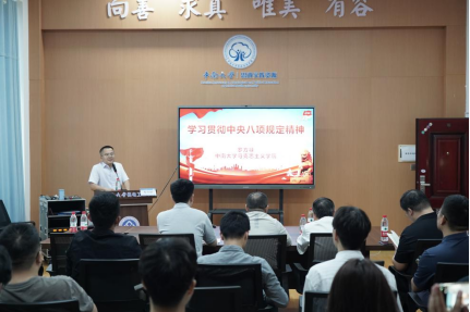 随后,马克思主义学院罗方禄副教授以《学习贯彻中央八项规定精神》题进行专题授课。他从历史纵深切入,梳理了从“三大纪律、八项注意”到中央八项规定的作风建设脉络,重点阐释了习近平总书记提出的“八项规定改变中国”的深刻内涵。授课结束后,罗方禄将精心准备的PPT留存学院,为支部书记后续备课提供了参考。