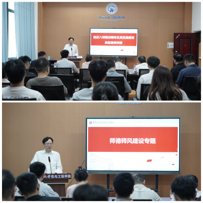 备课会伊始,学院党委书记肖来荣以《违反中央八项规定精神及其实施细则的典型案例》《师德师风建设专项》为主题展开讲解。他结合近年来教育系统及地方政府曝光的真实案例,深入剖析了违规吃喝、形式主义整改、学术不端等问题将中央八项规定精神与教师职业行为准则相结合,在科研经费使用、招生录取、学术评价等环节坚守纪律底线。