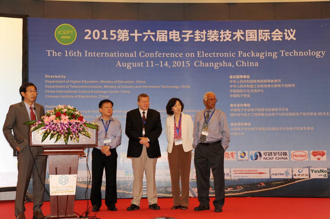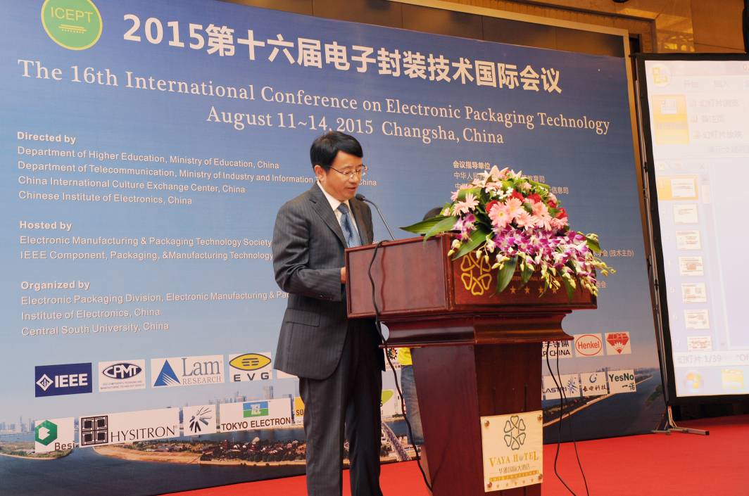 8月11—14日,由中国电子学会、国际电气电子工程师联合会电子元件封装和生产技术学会(IEEE-CPMT)主办,中国电子学会电子制造与封装技术分会、中南大学(高性能复杂制造国家重点实验室)承办的第十六届电子封装技术国际会议(ICEPT2015)在长沙召开。来自近20个国家和地区的600余名专家、学者和其他与会代表参加了大会。