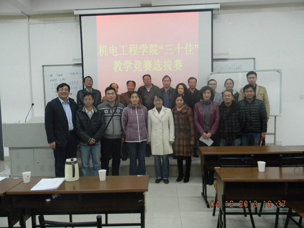 12月4日,由院部门工会和教务办联合组织的“三十佳”教学竞赛选拔赛在机电楼C座503成功举办。校工会组织部部长胡宏辉、副部长周子君应邀参加了此次活动。院党委书记兼工会主席李晓谦、院长黄明辉、副院长张怀亮非常重视此次活动并亲临现场认真观摩了选手的比赛。此次比赛由刘世勋、周国荣、刘舜尧、夏建芳、杨放琼5位老师担任评委,来自各系所的20名青年教师为此次比赛做了精心准备,本次活动由院工会常务副主席吴纯主持,院长助理云忠宣读了比赛规则和评分标准。