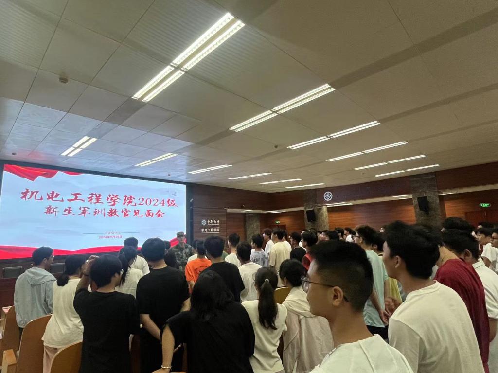 9月29日下午,机电工程学院(轻合金研究院、航空航天技术研究院)新生军训教官见面会暨新生廉洁教育活动在中铝科技大楼B214报告厅、工训中心报告厅成功举办。学院党委副书记李玲芝,年级辅导员、军训教官以及全体2024级新生共580余人参加活动。