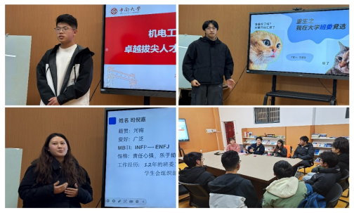 破冰环节,同学们开展了“姓名滚雪球”互动游戏,同学们在欢声笑语中增进情感、凝聚情谊。随后,进行了班委竞选。同学们积极踊跃上台展示自我,期待为班级建设贡献一份力量。最后,辅导员、副班导师向同学们介绍了学院特色学生活动、组织平台等,并就管理要求、档案转接、安全教育等事项开展交流。