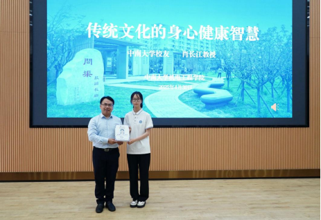 在热烈的掌声中,肖长江教授正式开讲。他以“如果把人比喻为电脑,传统文化就是装在电脑里的软件”为切入点,强调了传统文化对身心健康的重要性。