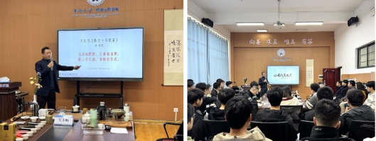 冬意渐浓,茶香沁人。近日,机电工程学院C202会议室内暖意融融,一场以“茶道与茶文化”为主题的人文讲堂在此清雅开启。讲堂特邀我院机械91级校友、国家一级评茶师吴步畅先生重返母校,引领50余名师生步入一场融贯古今、联结理论与实践的茶文化深度体验之旅。现场座无虚席,气氛温馨而热烈。