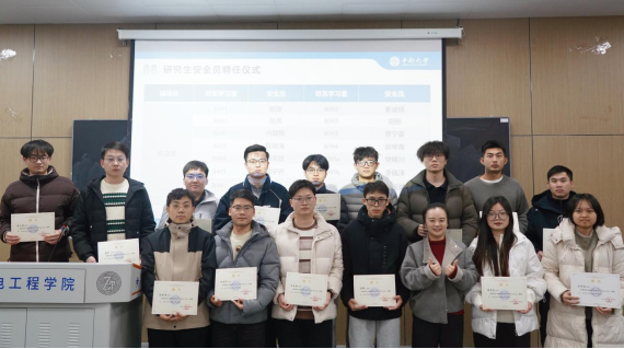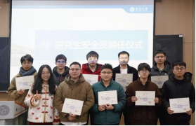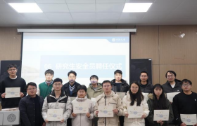 在研究生学习室安全员聘任仪式上,各辅导员依次为其负责的学习室安全员颁发聘任证书,这份聘书承载着学院的信任与期许,标志着新一批安全员正式履职,现场响起阵阵掌声。