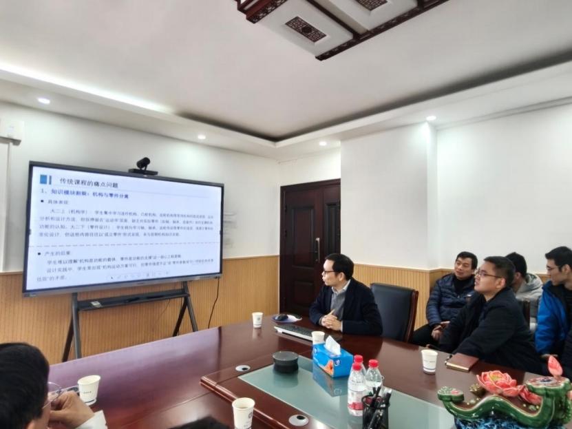 胡小舟老师带来《机械原理与设计大课程建设汇报》,直击传统课程“机构与零件知识割裂、教学内容松散、工程场景缺失”等弊端,提出以真实工程项目为主线,将机构学、机械零件、动力学、机械传动等模块深度整合,构建“导论—机构学基础—机构系统动力学基础—机械零件基础—机械传动基础”五大教学模块,并配套阶段性工程项目实践节点,实现理论教学与课程设计全流程贯通。课程融入课程思政、产教融合元素,采用数字化设计与仿真工具,推动学生从“理论学习”向“工程设计”能力转化,目前教材与课件初稿已基本完成,实践项目库也在不断丰富完善。