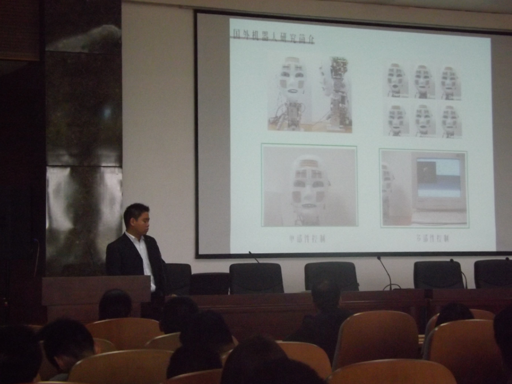 2013年11月4日上午10时30分,日本北海道大学博士毕业生钟国梁博士应邀来我院举行题为《智能机器人的优化控制与智能集成》的学术报告,本次报告由王恒升教授担任主持。