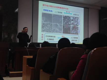 随后,帅教授结合团队的研究方向,向听众展示了他们研究团队的一项重要研究——人工骨。人工骨的制作过程以及人工骨的制作材料,这些新领域让听众大开眼界的同时,也受益匪浅。