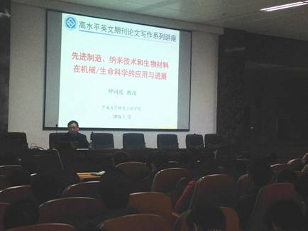 2015年1月12日下午三点,中南大学机电工程学院“高水平英文期刊论文写作系列讲座”第一场讲座在机电楼报告厅B214顺利举行。报告主讲人帅词俊教授及其研究团队为大家带来了一场主题为《先进制造、纳米技术和生物材料在机械/生命科学的应用与进展》的精彩讲座。