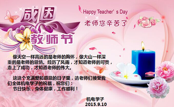 祝老师教师节快乐!发布时间:2015-09-10 浏览次数: 祝老师教师节快乐!