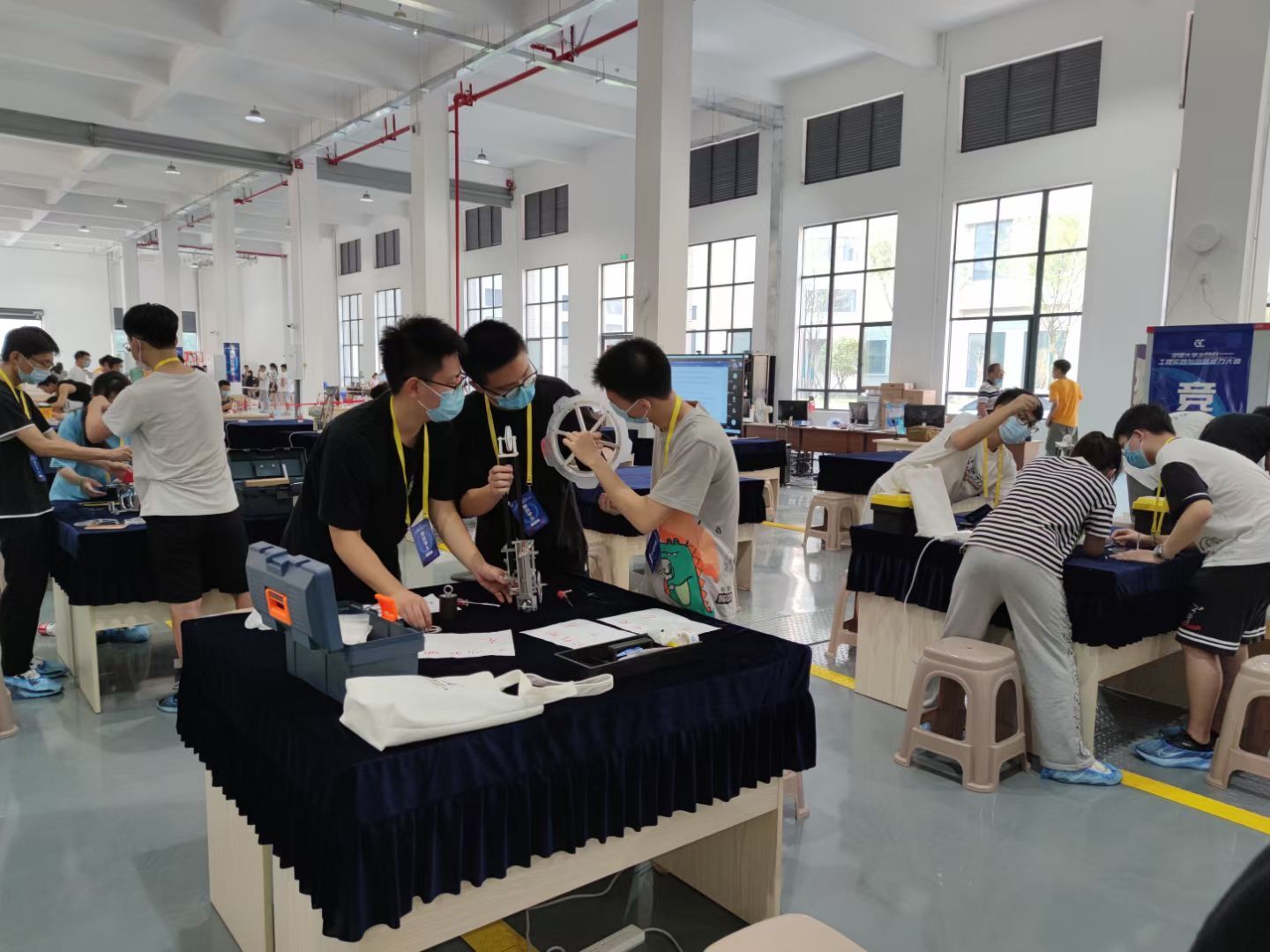 2021年中国大学生工程实践与创新能力大赛总决赛(湖南赛点)在中南大学机电工程实验教学中心顺利举行发布时间:2021-09-23 浏览次数: 9月16日至9月18日,由教育部高教司、教育部工程训练教学指导委员会举办的2021年中国大学生工程实践与创新能力大赛总决赛顺利举行。根据疫情防控总体态势,本次大赛总决赛采用“基于互联网的线上线下融合竞赛模式”,即“北京主赛场集中展示+各省级赛点分布式参与”的形式举行。其中,湖南赛点比赛活动由我院承办,在实验教学中心工训场馆有序开展。