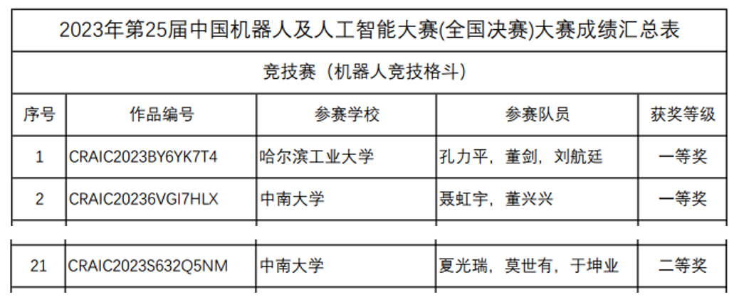 中国机器人及人工智能大赛是一项历史悠久、影响广泛的全国性 学科竞赛。作为中国人工智能学会最早主办的竞赛之一,大赛已为我国培养了一大批能动手、敢创新、可协同的复合型人才,目前已被列入中国高等教育学会发布的《2022年全国普通高校大学生竞赛分析报告》,也是中南大学学科竞赛重点支持项目。 全国共有25个高校100余支队伍入围国赛,其中,我院学子作品“长虹”号和“冰魄”号代表学校参加了比赛。