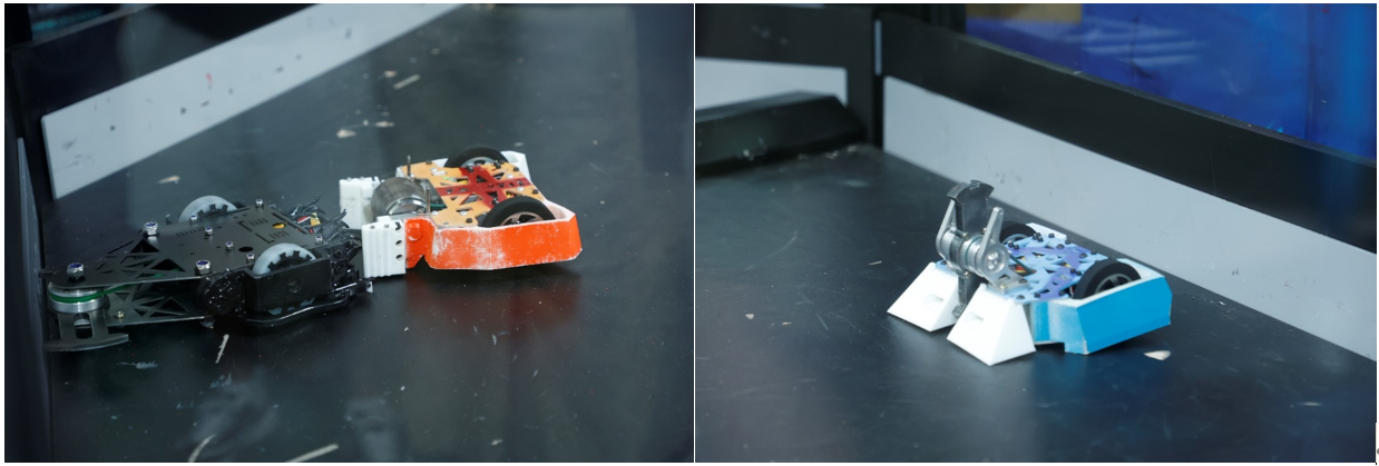 “长虹”号和“冰魄”号 经过两轮残酷的淘汰赛,由聂虹宇、董兴兴组成的“虹猫队”顺利挺进国赛决赛,对战来自哈工大的“CR”战队并获得了全国亚军。